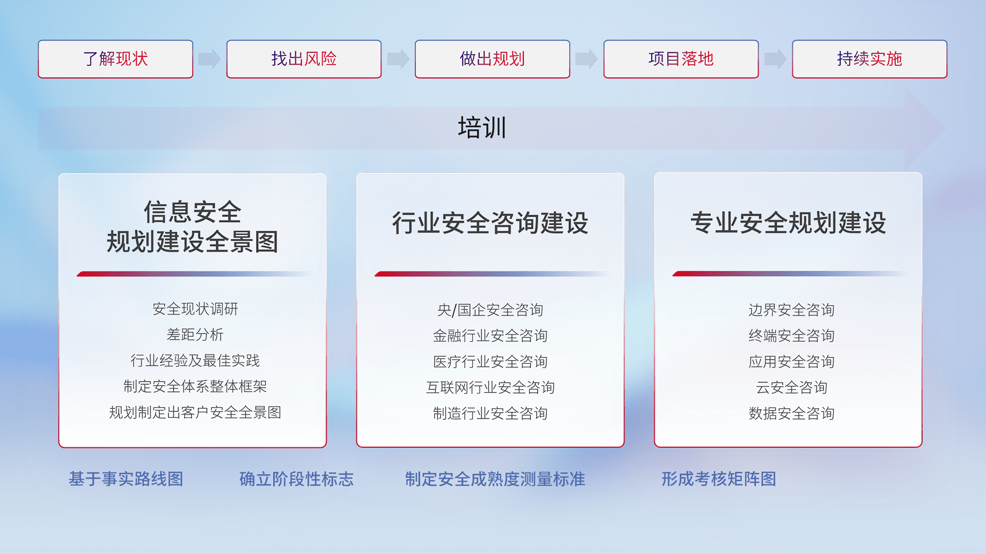 梳理客户信息安全现状调研、、、差距分析结果,,,结合行业先进经验及最佳实践,,,制订客户的信息安全管控体系总结架构,,,,最终形成一个完整的客户信息安全规划与建设的全景图。。。。