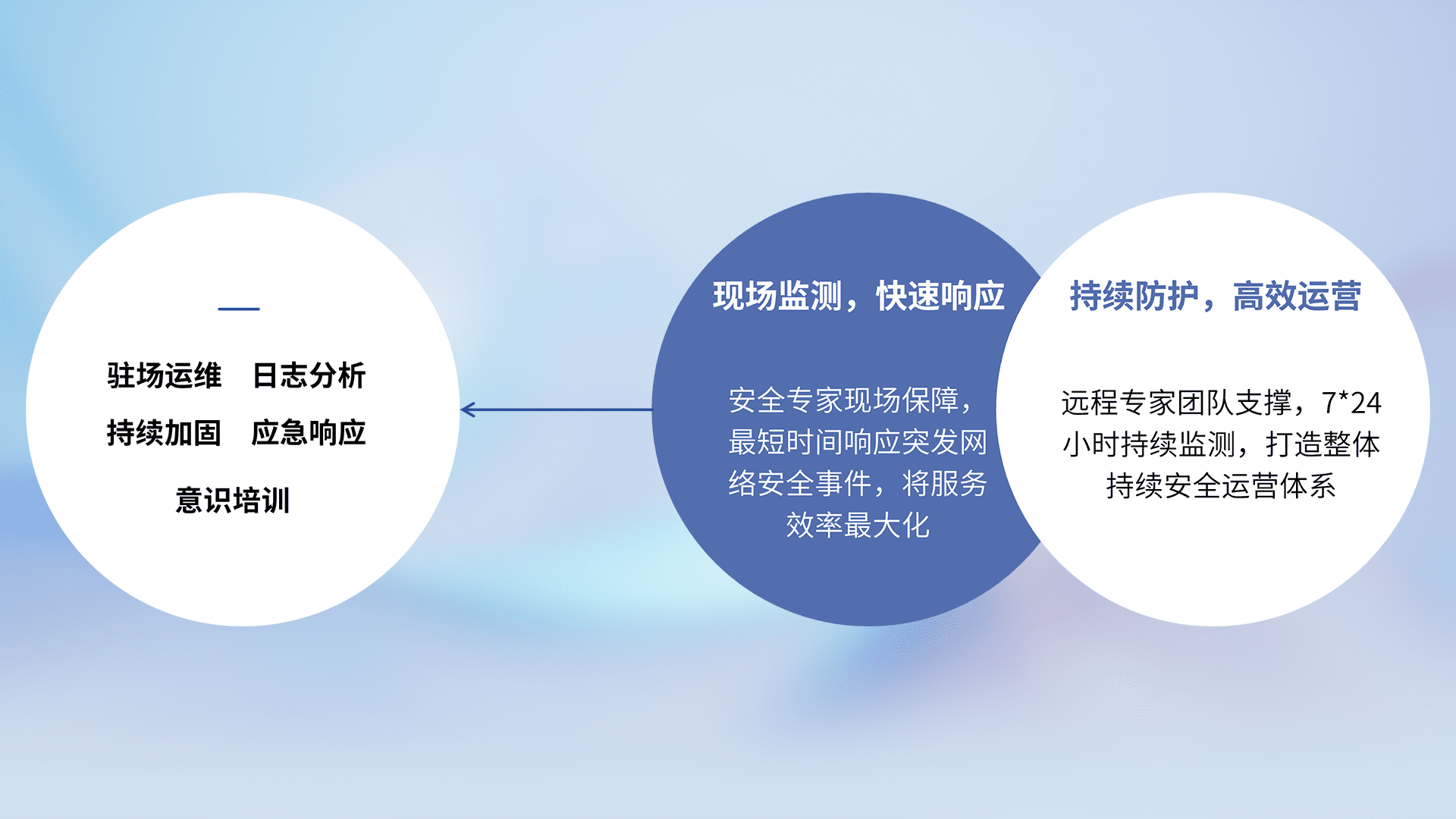 针对客户行业特性,,提供专属的一站式安全管理服务,,,,帮助客户全面感知网络空间威胁,,,,通过安全专家的线上、、、、线下防护支持,,,实现风险闭环,,将安全保障常态化,,,为客户打造常态化安全运维运营服务。。